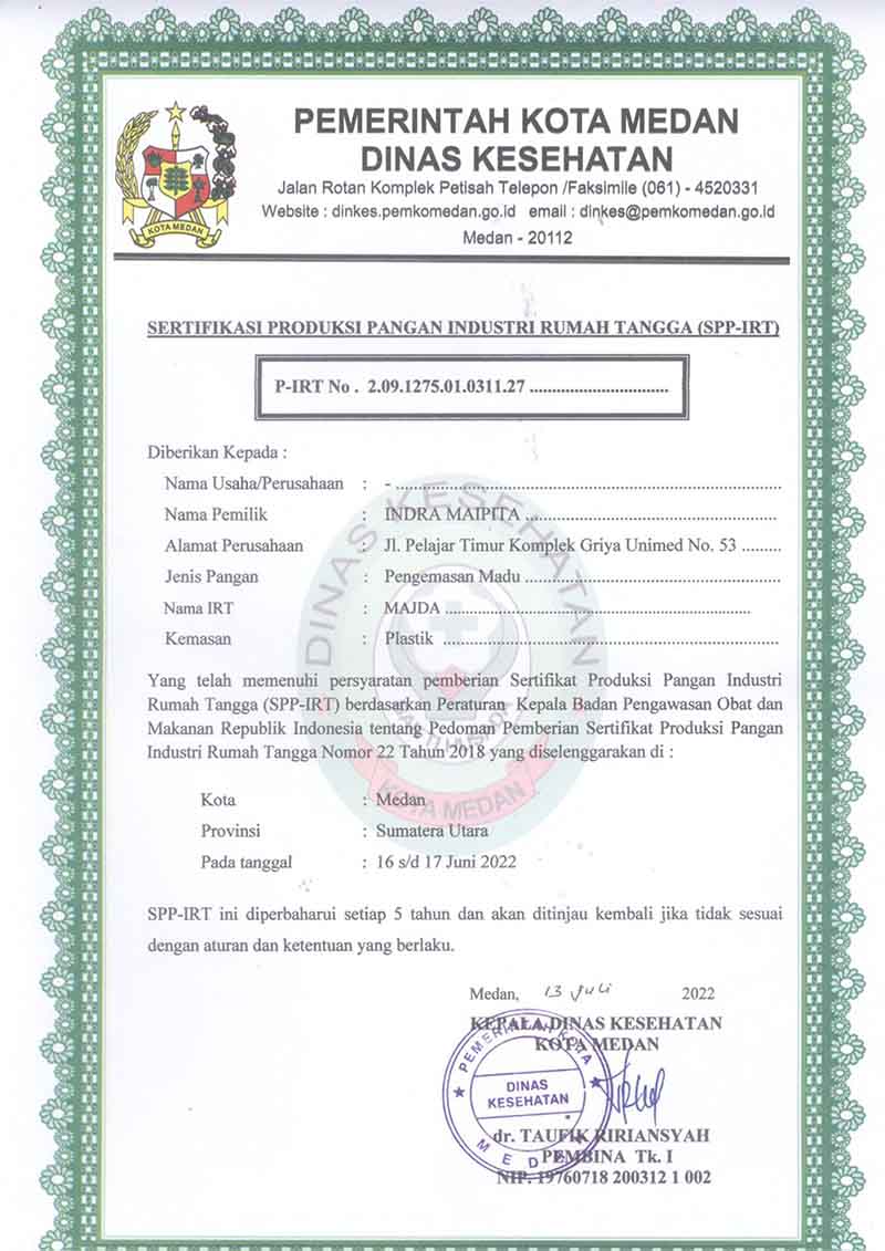 Madu majda sudah teruji kemurnian dan keasliannya, hal ini didapat dari hasil tes uji keaslian dan kemurnian madu majda melalui tes Laboratorium.